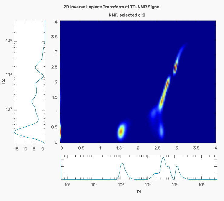 The measurement software also has special requirements for these applications. To measure petrophysical properties of oil rocks, a number of experiments should be performed to determine the specified parameters. It is necessary to ensure that T1, T2, T1-D, and T2-D tests can be carried out, and data can be processed on two-dimensional maps by multi-exponential inversion. For this, it is essential the LITE 2D ILT Condor Module for data processing on a T1-T2 map by two-dimensional inverse Laplace transform.