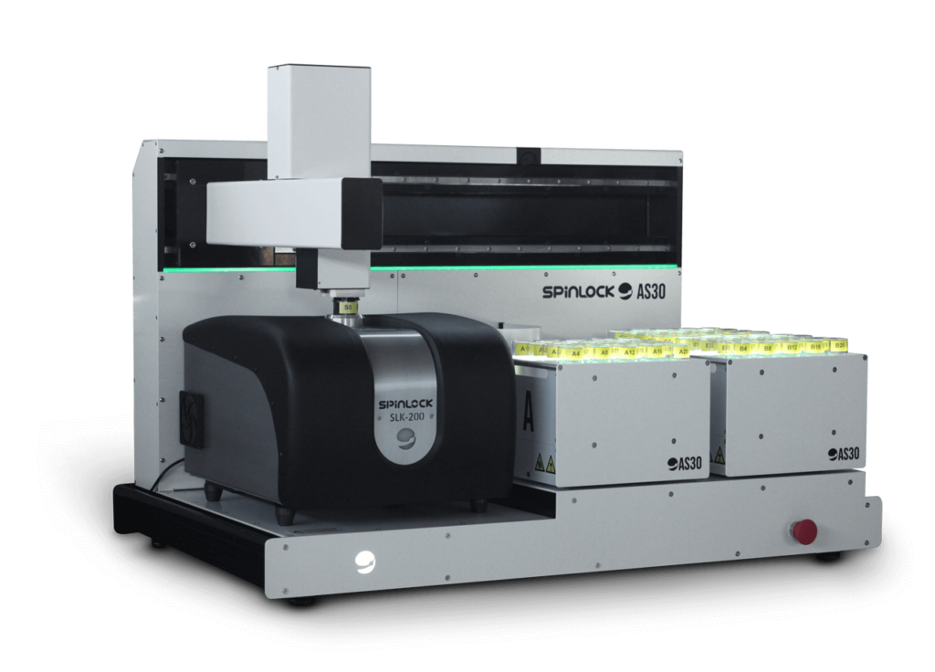 Designed to automatically insert and remove samples, compatible with SLK 100, SLK 200 and SLK 1000 PM. The SLK Auto Sampler will pick up a bulk sample holder from a prepared set of samples, weigh it, and place it for measurement in the Spinlock equipment automatically. Capacity: 2 modules of 50 samples and scalable.